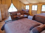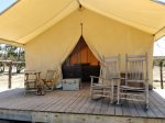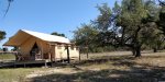 Enjoy great wines, hill country sunsets and evening campfires "off the grid"....then slip into tents on natural cedar decks with premium beds, rich cognac leather, antique furniture and accents. (Bring your own king size sheets)