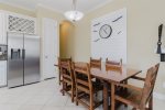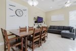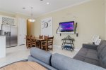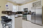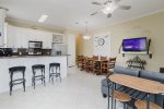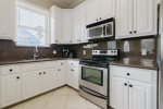 This townhouse boasts a beautiful full size kitchen with seating for 4 at the counter in addition to a dining room. Down the hall is the washer and dryer. There is also beautiful ceramic tile throughout. A gated swimming pool is just outside the back door with both patio and grassy areas. There are also external showers to rinse off chlorine and sand.
