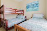 -Bedroom number three features a double/ full size bunk beds twin on top and a twin bed.