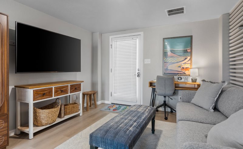 Stay just steps from the water in this charming ground-floor studio, perfect for a relaxing coastal getaway. Enjoy a private dock with boat parking, private parking, and a beautiful kitchen for intimate meals. Comfortably sleeps four with a queen bed and sofa bed, plus a full bath for convenience. Located only minutes from historic Port Isabel’s shops, restaurants, and attractions – and just a short drive across the scenic Queen Isabella Causeway to South Padre Island’s powder soft beaches.