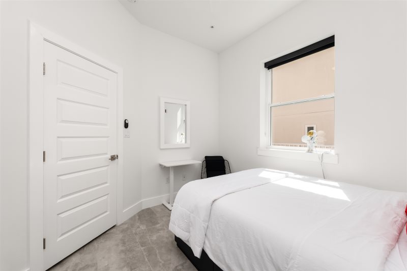 The guest room features a full bed, providing comfortable accommodations for additional guests.